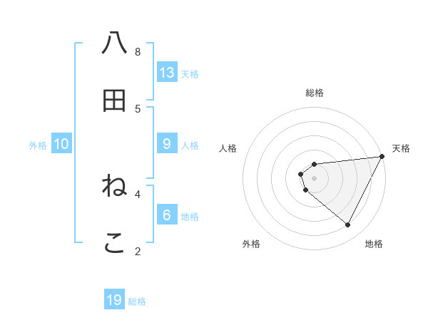 八田 ねこさんの天格は13画の5点!