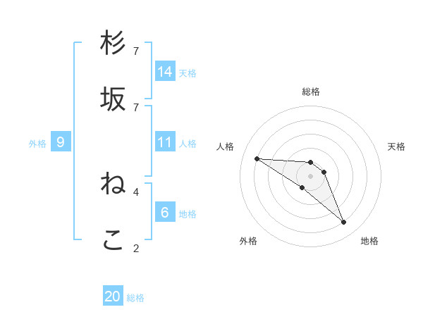 杉坂 ねこさんを姓名の画数から五運を鑑定