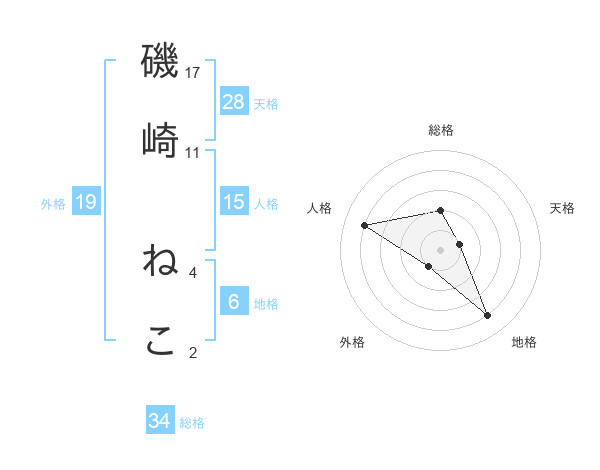 磯崎 ねこさんの人格は15画の4点!