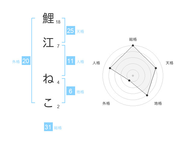 鯉江 ねこさんの総格は31画の5点!