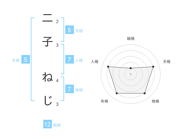 二子 ねじさんの総格は12画の1点!