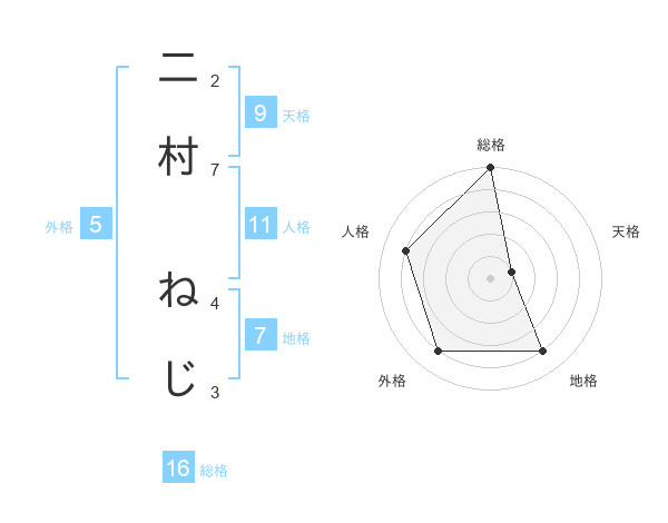 二村 ねじさんの総格は16画の5点!