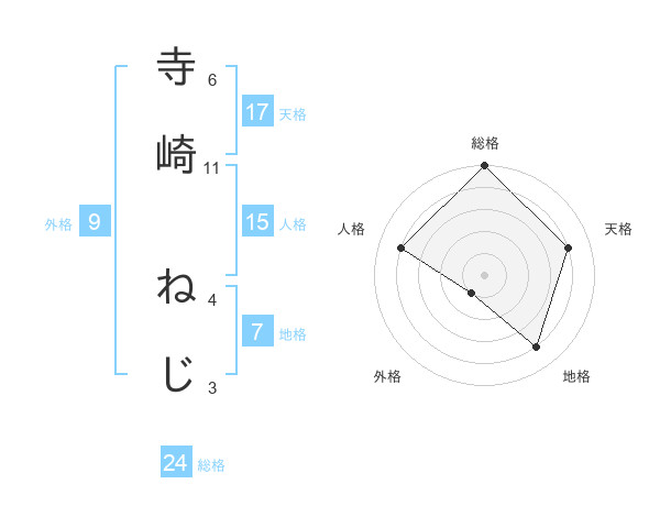 寺崎 ねじさんの天格は17画の4点!
