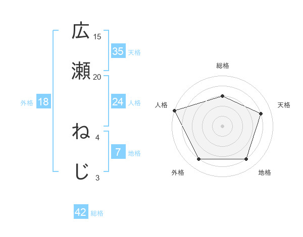 広瀬 ねじさんの天格は35画の4点!