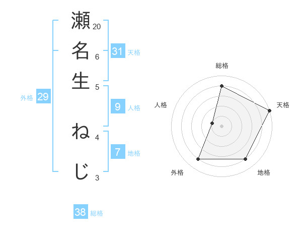 瀬名生 ねじさんの天格は31画の5点!