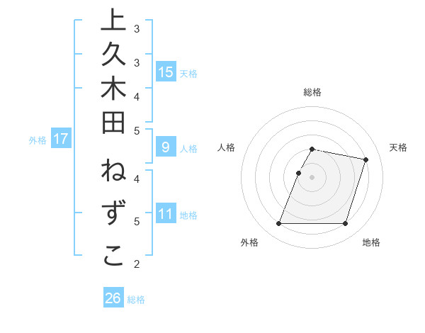 上久木田 ねずこさんを姓名の画数から五運を鑑定