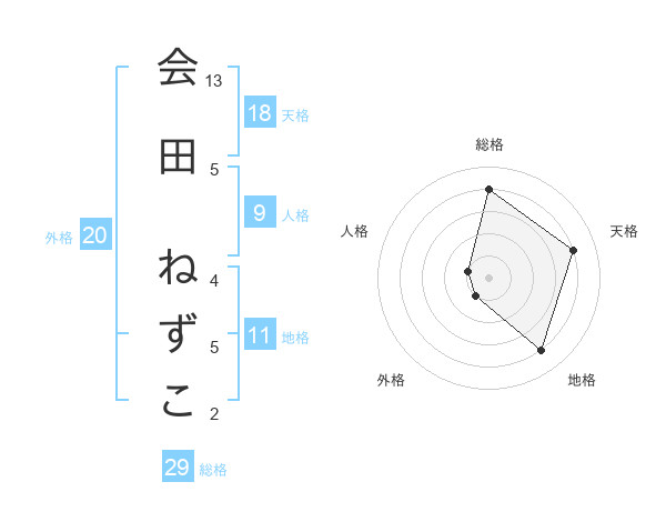 会田 ねずこさんを姓名の画数から五運を鑑定