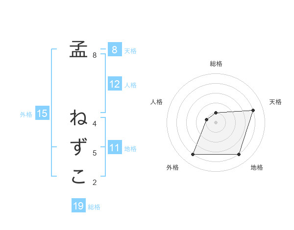 孟 ねずこさんを姓名の画数から五運を鑑定