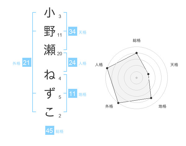 小野瀬 ねずこさんを姓名の画数から五運を鑑定