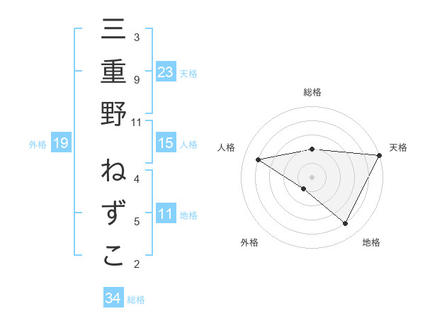 三重野 ねずこさんを姓名の画数から五運を鑑定