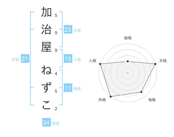 加治屋 ねずこさんを姓名の画数から五運を鑑定