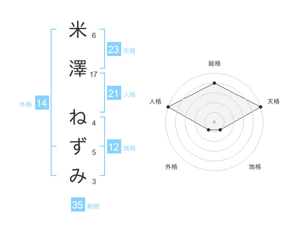 米澤 ねずみさんを姓名の画数から五運を鑑定