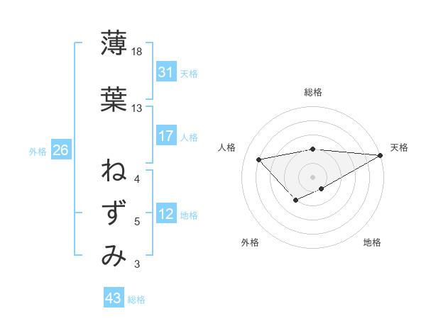 薄葉 ねずみさんを姓名の画数から五運を鑑定