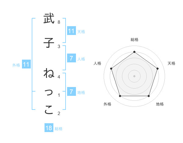 武子 ねっこさんの天格は11画の4点!