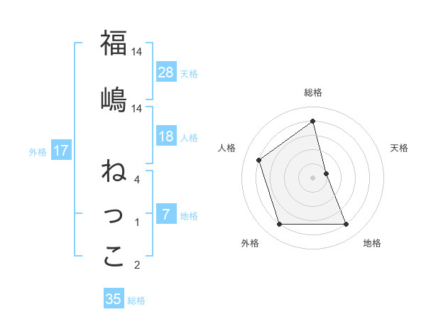 福嶋 ねっこさんを姓名の画数から五運を鑑定