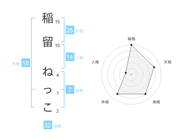 稲留 ねっこさんを姓名の画数から五運を鑑定