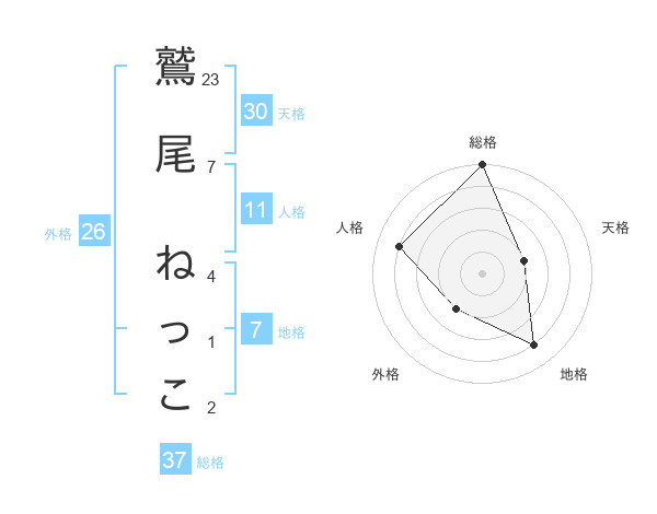 鷲尾 ねっこさんの総格は37画の5点!