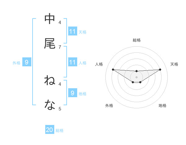 中尾 ねなさんを姓名の画数から五運を鑑定