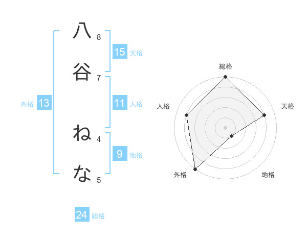 八谷 ねなさんを姓名の画数から五運を鑑定
