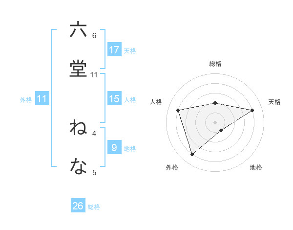 六堂 ねなさんの外格は11画の4点!