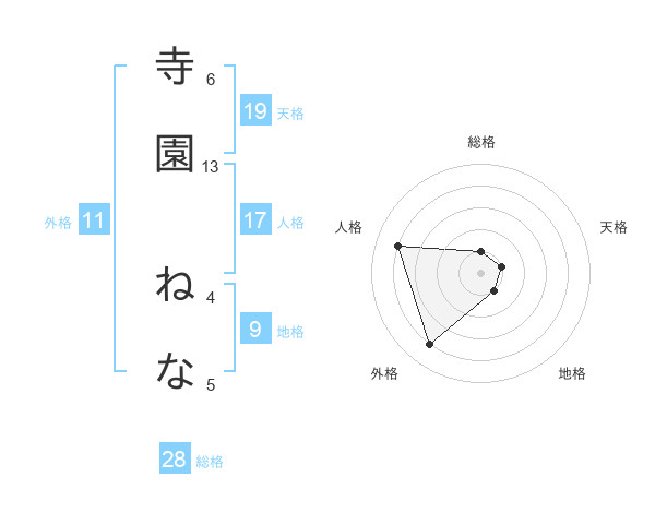 寺園 ねなさんを姓名の画数から五運を鑑定