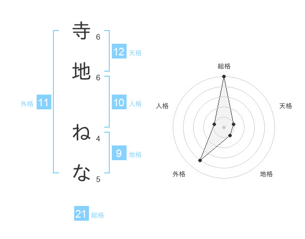 寺地 ねなさんの外格は11画の4点!