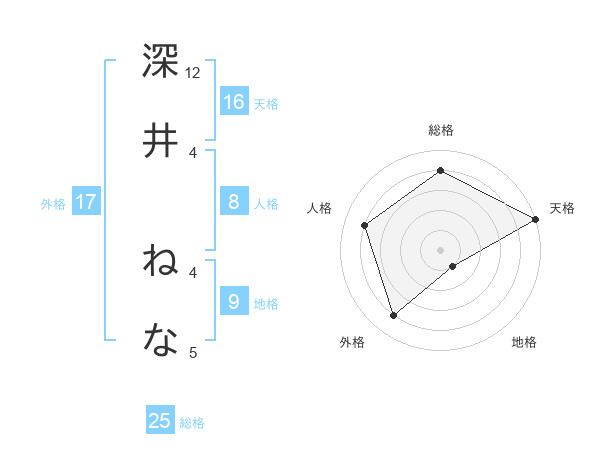 深井 ねなさんの外格は17画の4点!