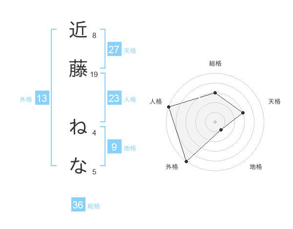 近藤 ねなさんを姓名の画数から五運を鑑定