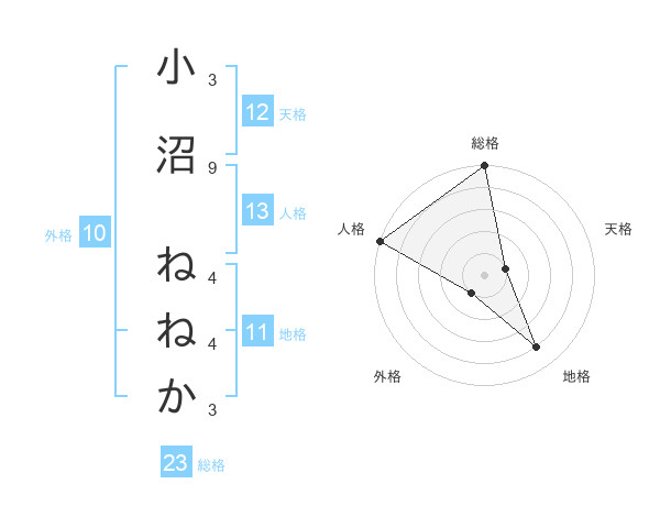 小沼 ねねかさんの総格は23画の5点!