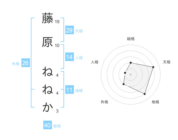 藤原 ねねかさんを姓名の画数から五運を鑑定