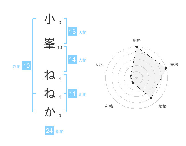 小峯 ねねかさんの天格は13画の5点!