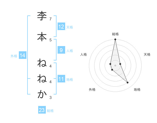 李本 ねねかさんの総格は23画の5点