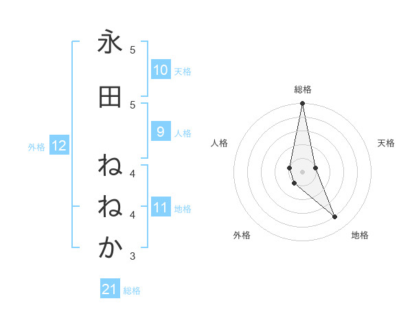 永田 ねねかさんを姓名の画数から五運を鑑定