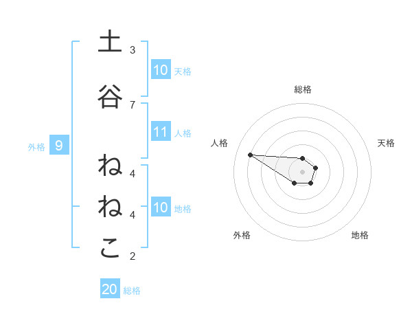 土谷 ねねこさんを姓名の画数から五運を鑑定