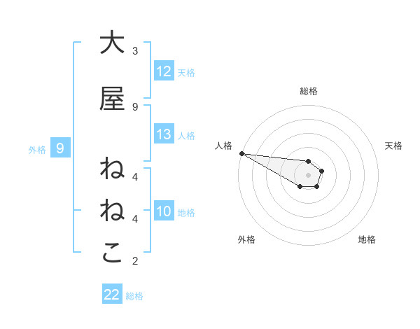 大屋 ねねこさんを姓名の画数から五運を鑑定