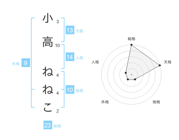 小高 ねねこさんを姓名の画数から五運を鑑定
