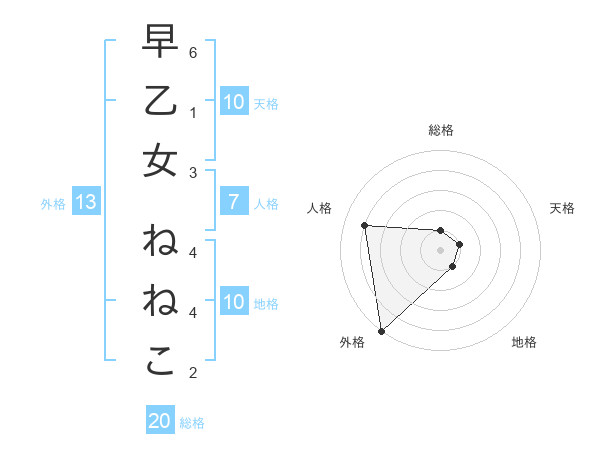 早乙女 ねねこさんを姓名の画数から五運を鑑定
