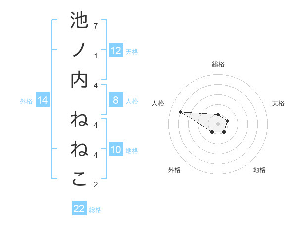 池ノ内 ねねこさんの天格は12画の1点!