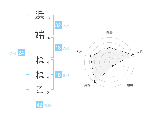 浜端 ねねこさんを姓名の画数から五運を鑑定