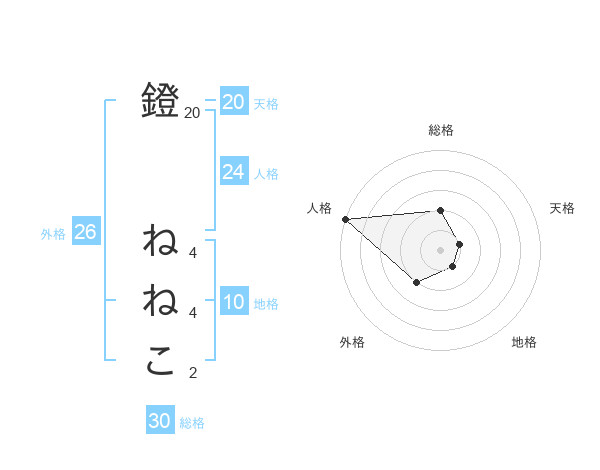 鐙 ねねこさんを姓名の画数から五運を鑑定