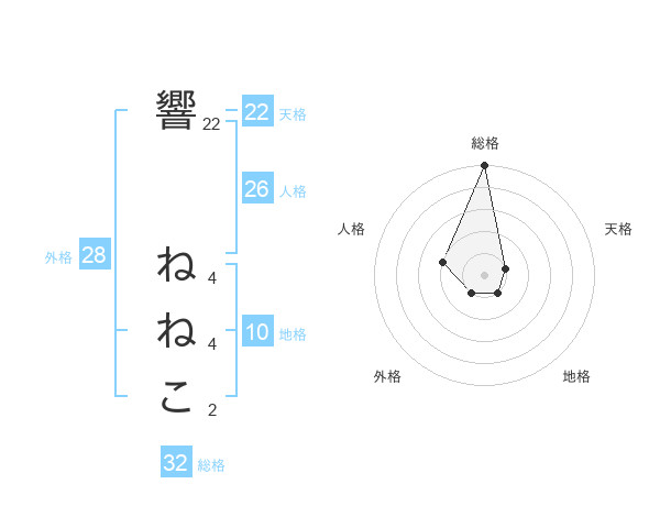 響 ねねこさんの総格は32画の5点!