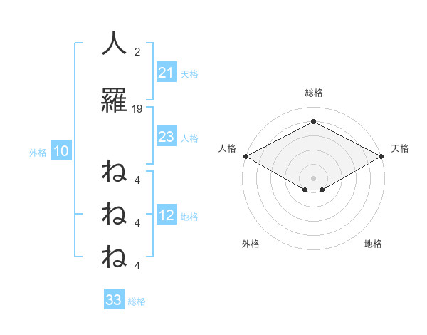人羅 ねねねさんの総格は33画の4点!
