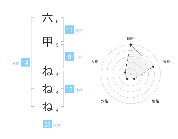 六甲 ねねねさんの総格は23画の5点