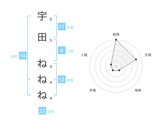 宇田 ねねねさんを姓名の画数から五運を鑑定