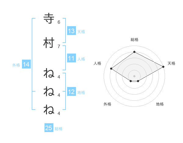 寺村 ねねねさんの天格は13画の5点!