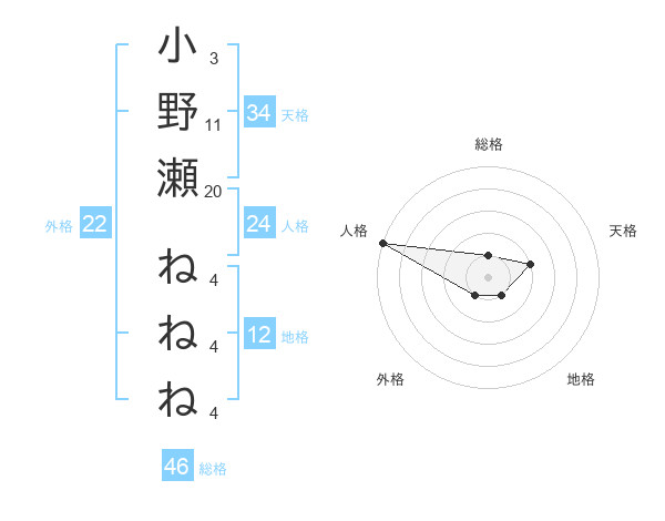 小野瀬 ねねねさんを姓名の画数から五運を鑑定