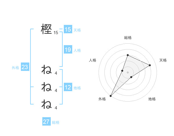 樫 ねねねさんの天格は15画の4点!