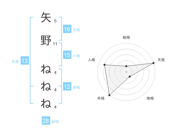 矢野 ねねねさんを姓名の画数から五運を鑑定