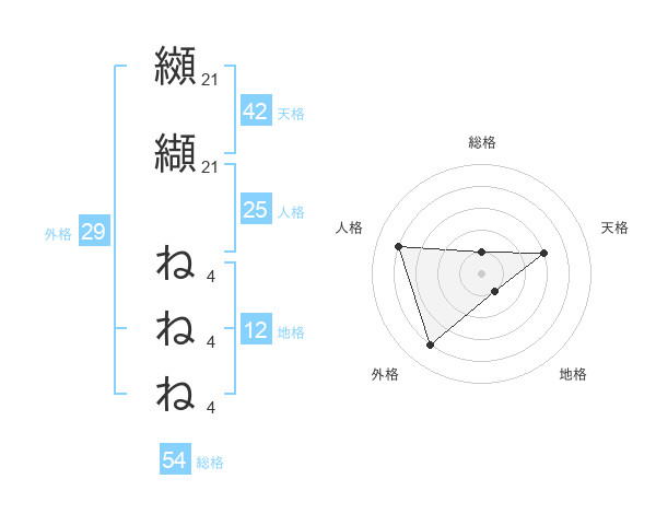 纐纈 ねねねさんの総格は54画の1点!