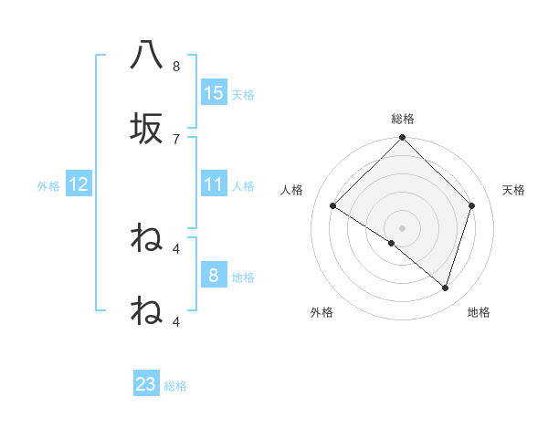 八坂 ねねさんを姓名の画数から五運を鑑定